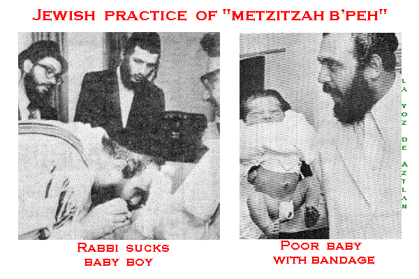 Circumcision has no medical benefits, leaves the infant traumatised, and lowers the ability of an adult male to experience sexual pleasure as normal men do. Most of the sensitive pleasure-responsive nerves are in the foreskin, and it is that part of the penis which acts as the lubricating mechanism during sex. According to the færy stories of the Old Testament and Talmud, the big scary God of the Jews, having created humanity in his image, suddenly took a disliking to foreskins and ordered his devotees to have their male children maimed in perpetuity. For a reason which beggars belief, the Jewish leaders took incorporated this proscription against foreskins into a ritual which involves a Rabbi masturbating an infant's penis so that it rises, then slicing off the foreskin with his nail, and putting it in his mouth to give it a good suck! All this is performed before a watchful congregation, and must be done before the child is eight days old. No wonder Jews suffer more neuroses than Gentiles, with this start in life!